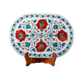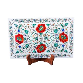 Floral Design Marble Inlay Tray