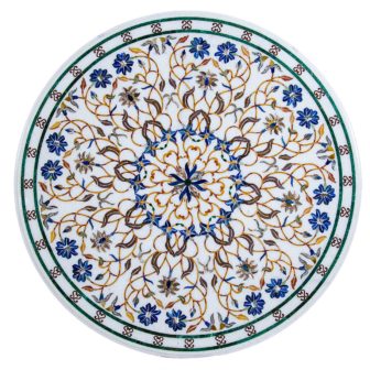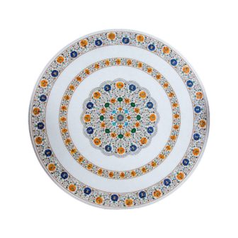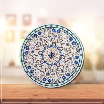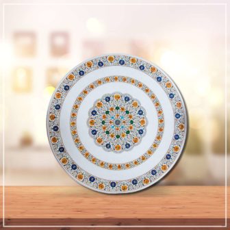 Gokraftly White Marble and Multicolor Triangle Mix Design Tea, Coffee, Cocktail Coaster Set of 4 Vintage Handmade Coaster Set Round Shape Marble Coaster